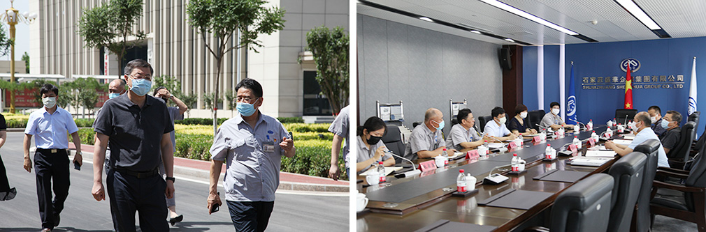 2020年7月8日下午,石家莊市政協主席劉明軒、秘書長趙磊、研究室副主任李振杰一行赴盛華企業集團就扎實推進自貿試驗區正定片區建設進行調研。自貿區正定片區管委會主任、石家莊綜合保稅區黨工委書記、管委會主任陳振居、正定高新區管委會主任索偉華、經濟發展局局長李薈萍陪同調研。